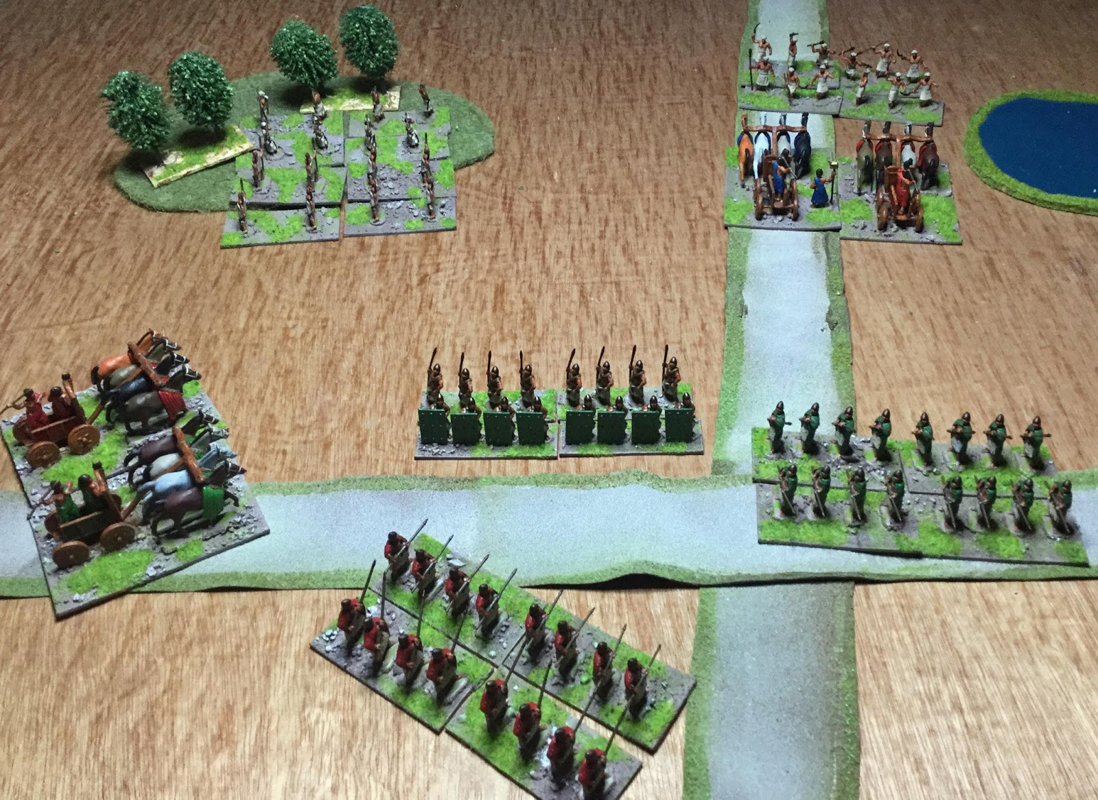 Building on the success of the One Hour Wargames games DBA seems the obvious next step. Twice the amount of maneuver units, with simple command and control rules and some added complexity in combat resolution. A step forward from OHW and worth digging out my old V2 set. Who knows, may inspire me to by the V3 set. If he can deal with DBA I can then try Art de la Guerre rules. My ancient rules of choice at the moment and very firmly a DB inspired set. These may be a step to far at the moment but lets see how he gets on with DBA and then have another look.Dark Ages